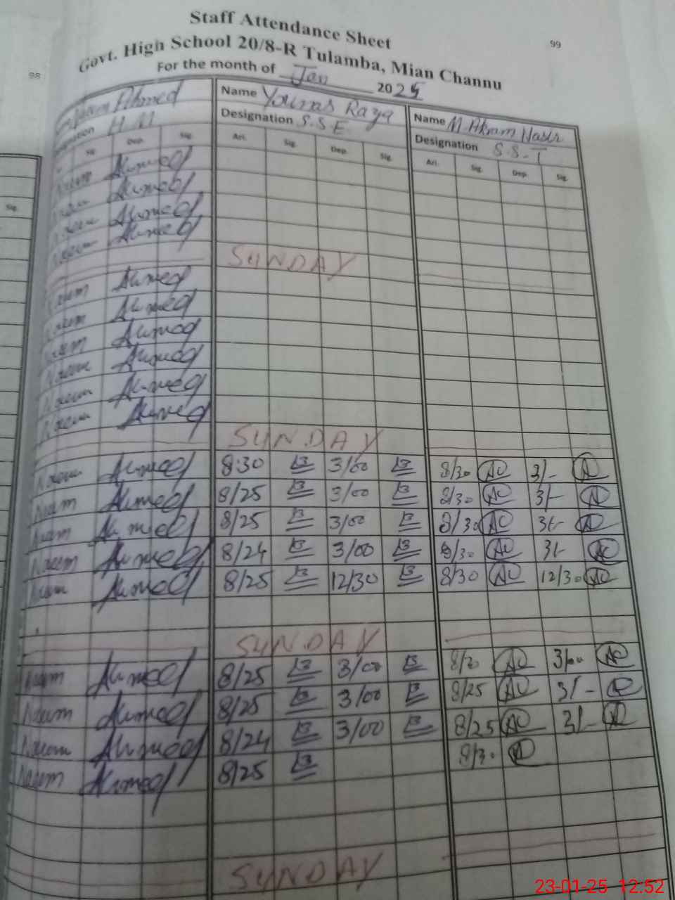 | District: KHANEWAL | Tehsil: MIAN CHANNU | Markaz: SECONDARY-WING | Level: High | |