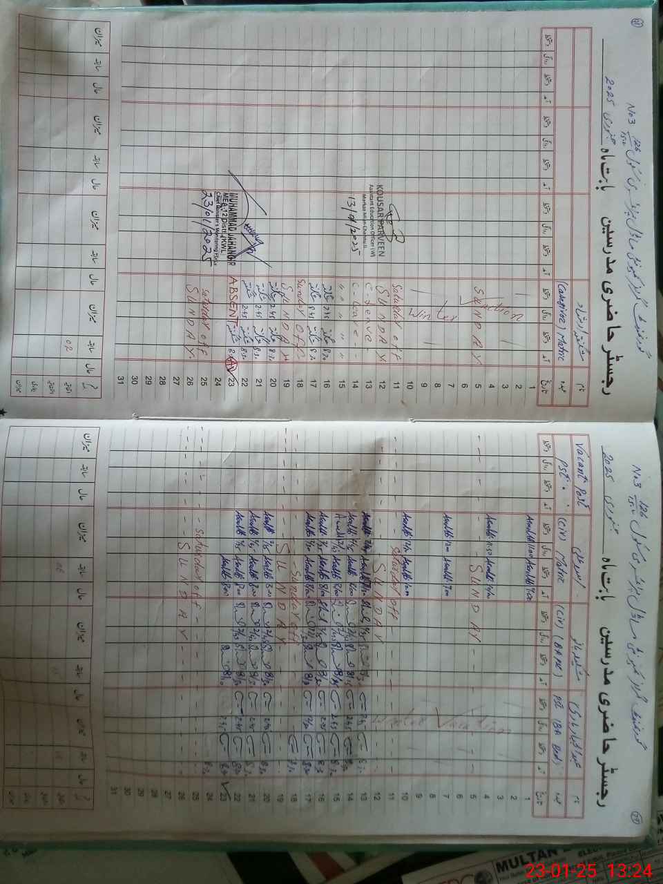 | CNIC | Full Name | Designation | R/C | Absence During Last Calender Month |