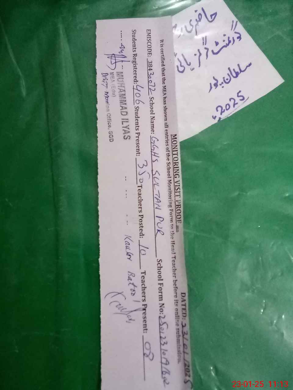 | EMIS Code: 38430072 | Name of School: GGHS SULTAN PUR | |||