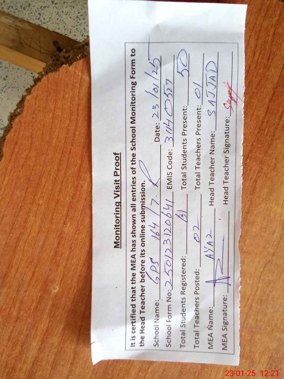 | EMIS Code: 31140527 | Name of School: GPS CHAK NO.164-7R | |||