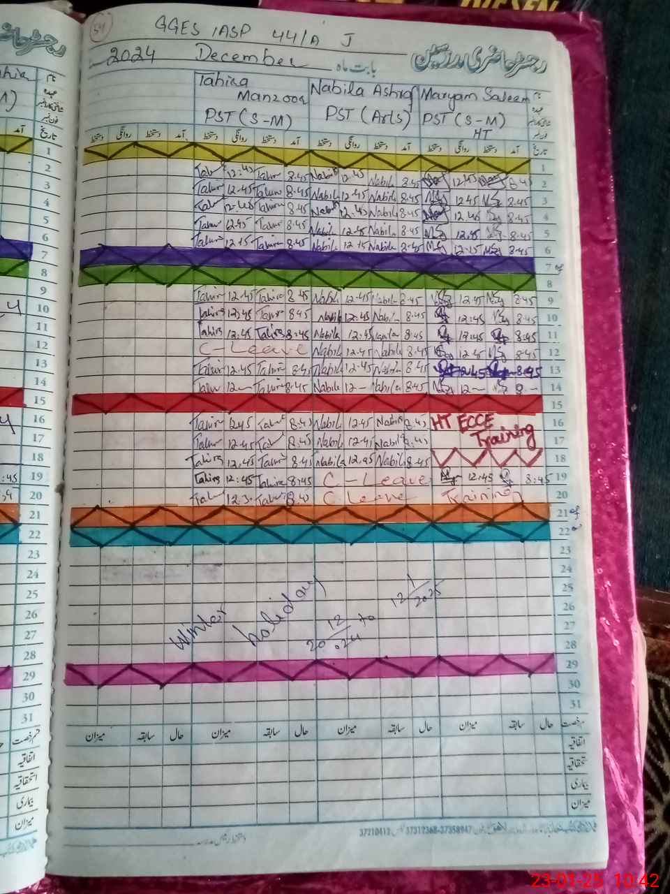 | Leave | Duty | Absent | Maternity | Medical | Ex- Pak |