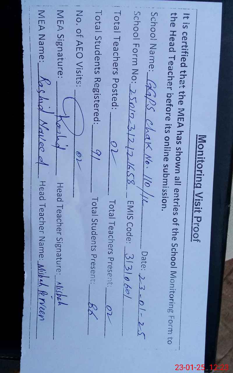 | EMIS Code: 31310601 | Name of School: GGPS CHAK NO. 110/1-L | |||