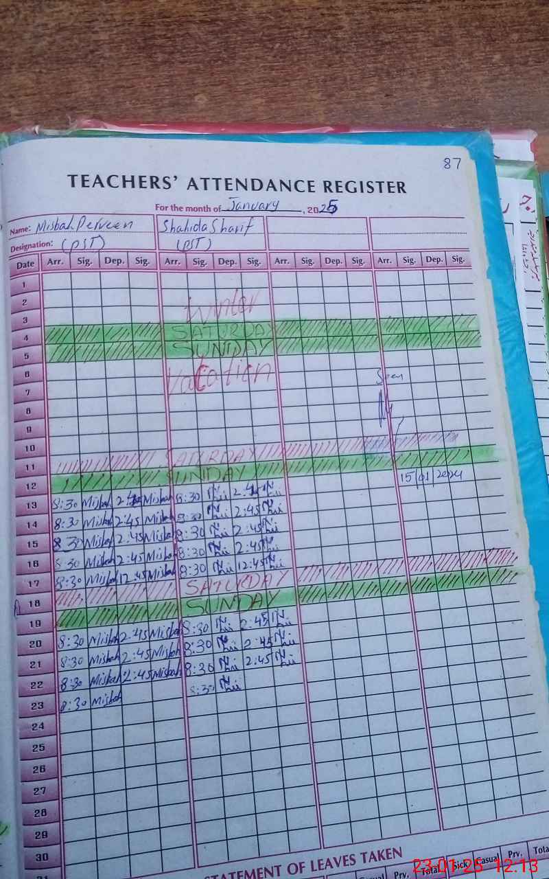 | Attendance Register | Head Teacher | MEA with School | Visit Proof |