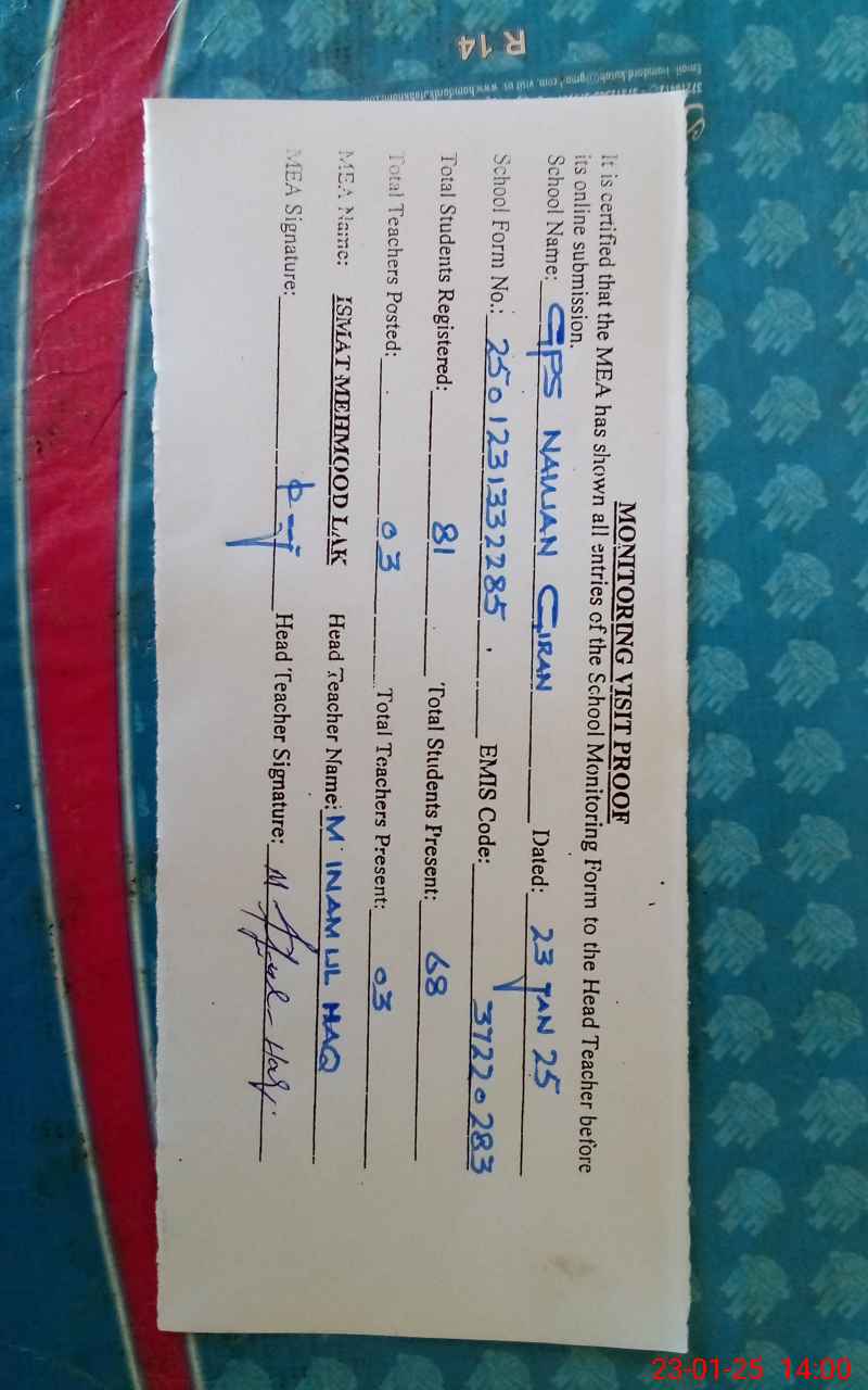| EMIS Code: 37220283 | Name of School: GPS NAWAN GIRAN | |||