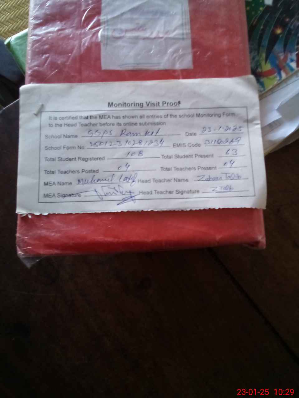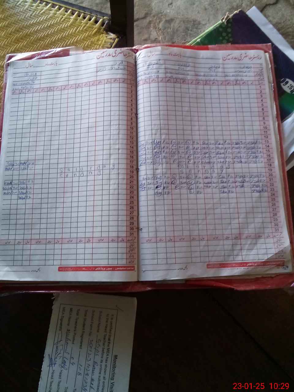 | Attendance Register | Head Teacher | MEA with School | Visit Proof |