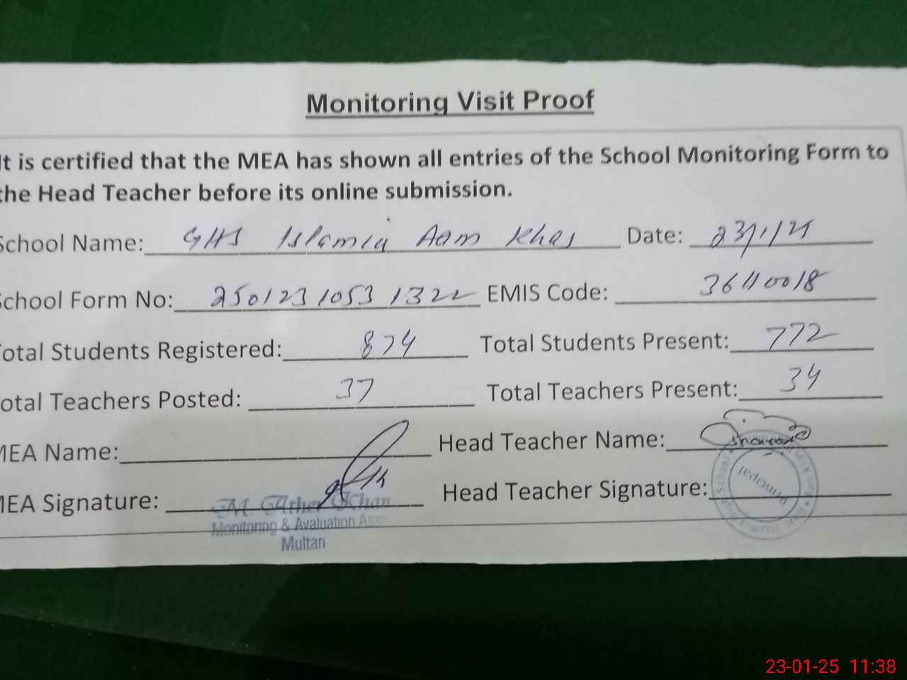 | EMIS Code: 36110018 | Name of School: GHS ISLAMIA AAM KHAS BAGH MULTAN | |||