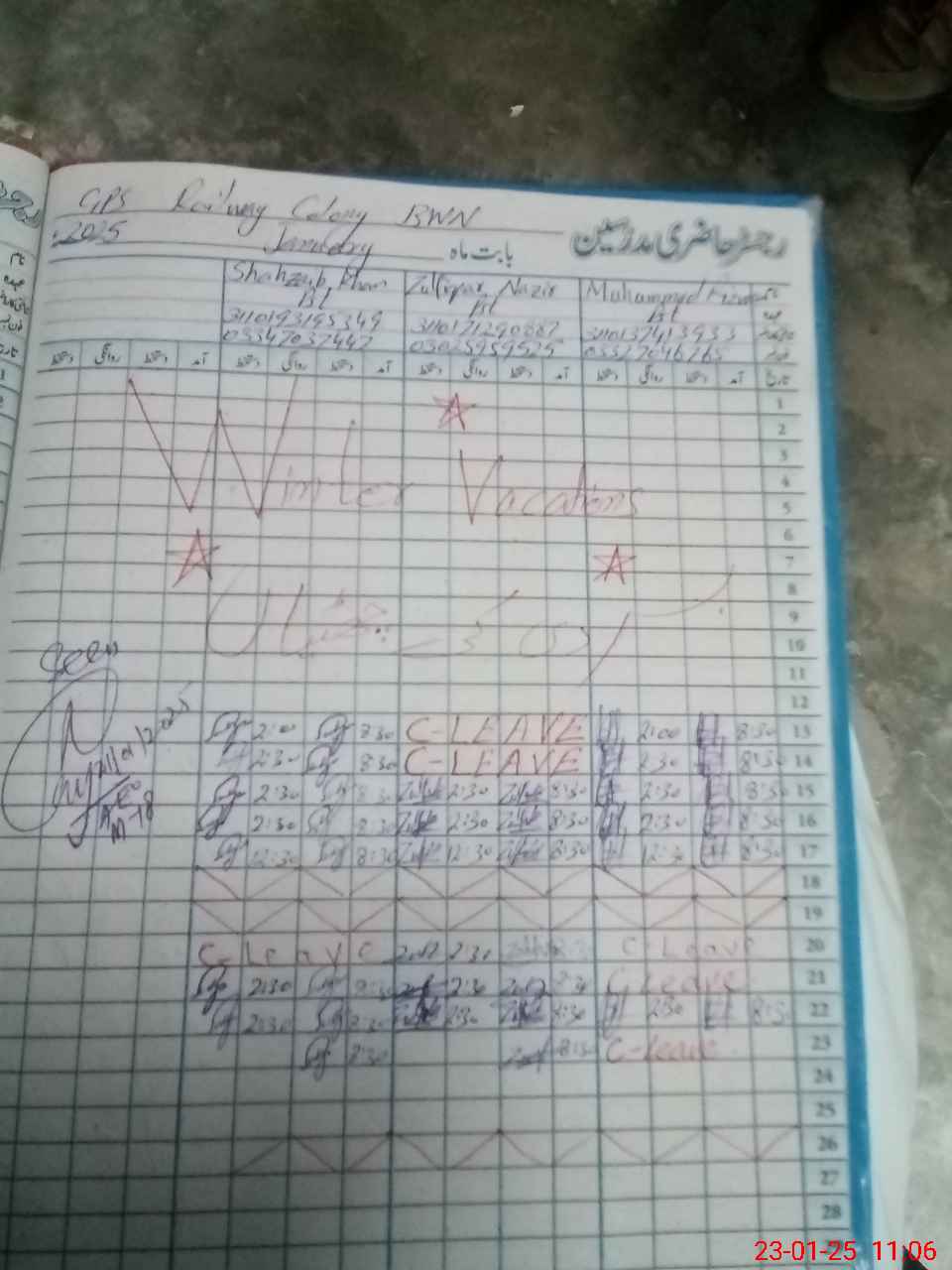 | CNIC | Full Name | Designation | R/C | Absence During Last Calender Month |