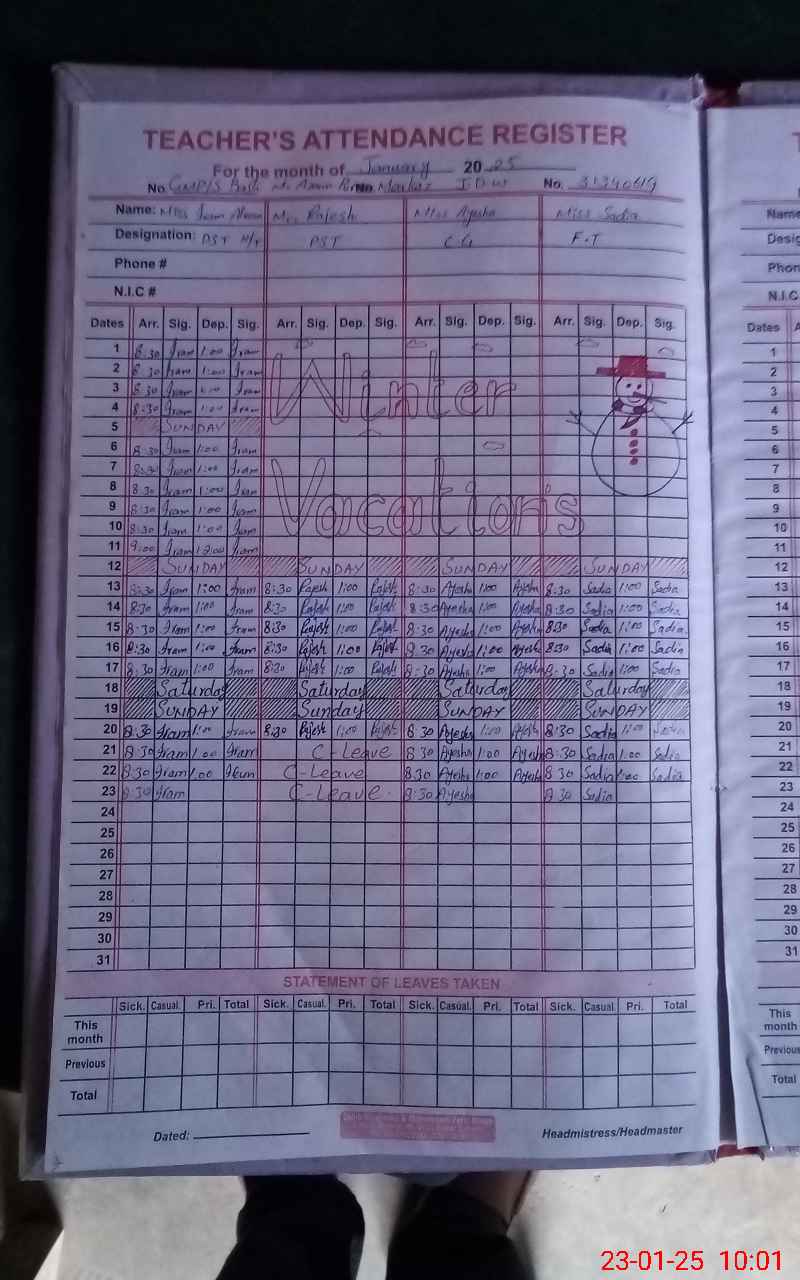 | Name: Ir**** Al**** Designation: (School Headmaster's/Headmistress's) PST Phone/Cell Number: 03**** |