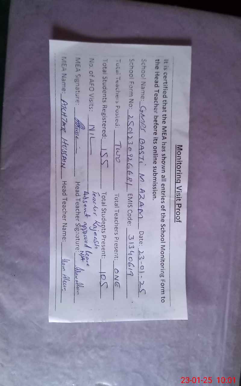 | EMIS Code: 31340619 | Name of School: GMPS BASTI MUHAMMAD AZAM | |||