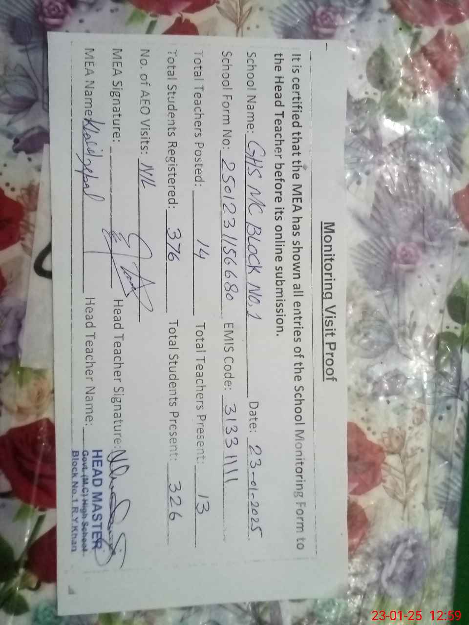 | EMIS Code: 31331111 | Name of School: GHS MC BLOCK NO. 1 | |||