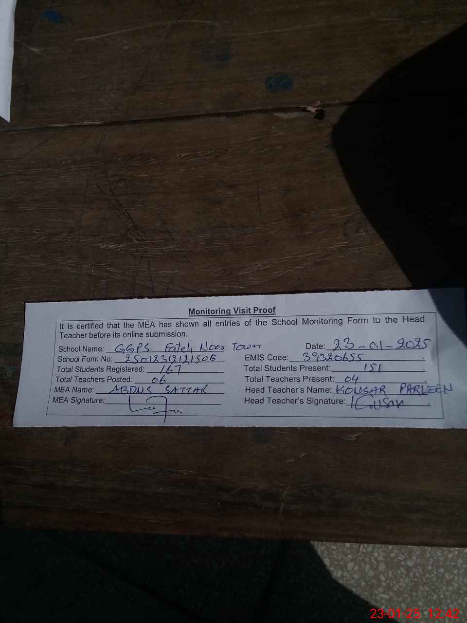 | EMIS Code: 39320655 | Name of School: GGPS FATEH NOOR TOWN | |||