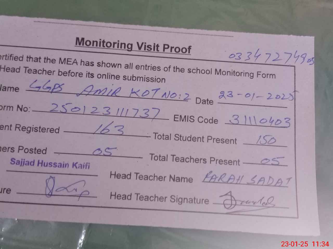 | EMIS Code: 31110403 | Name of School: GGPS AMIR KOT NO. 2 | |||