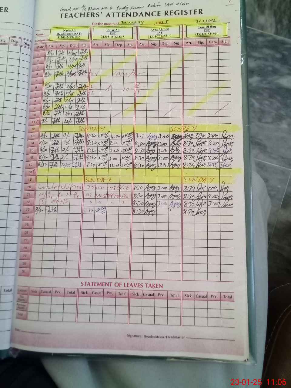 | 31**** | Ta**** Am**** | PST | Temporary | 0 | 0 | 0 | 0 | 0 | 0 | 0 | 0 | 0 | Absent (Un-Authorized) |