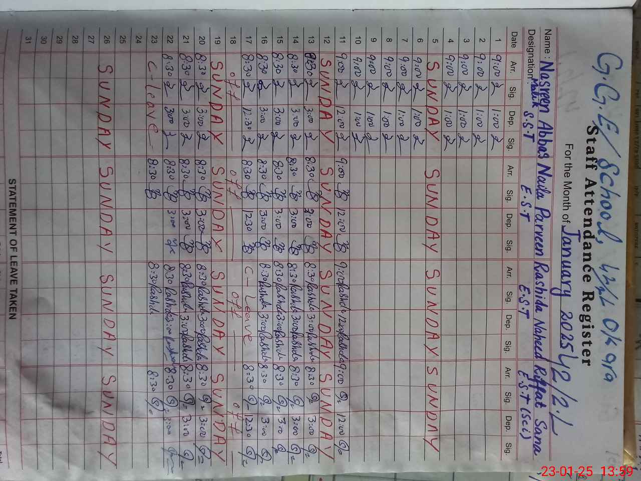 | CNIC | Full Name | Designation | R/C | Absence During Last Calender Month |