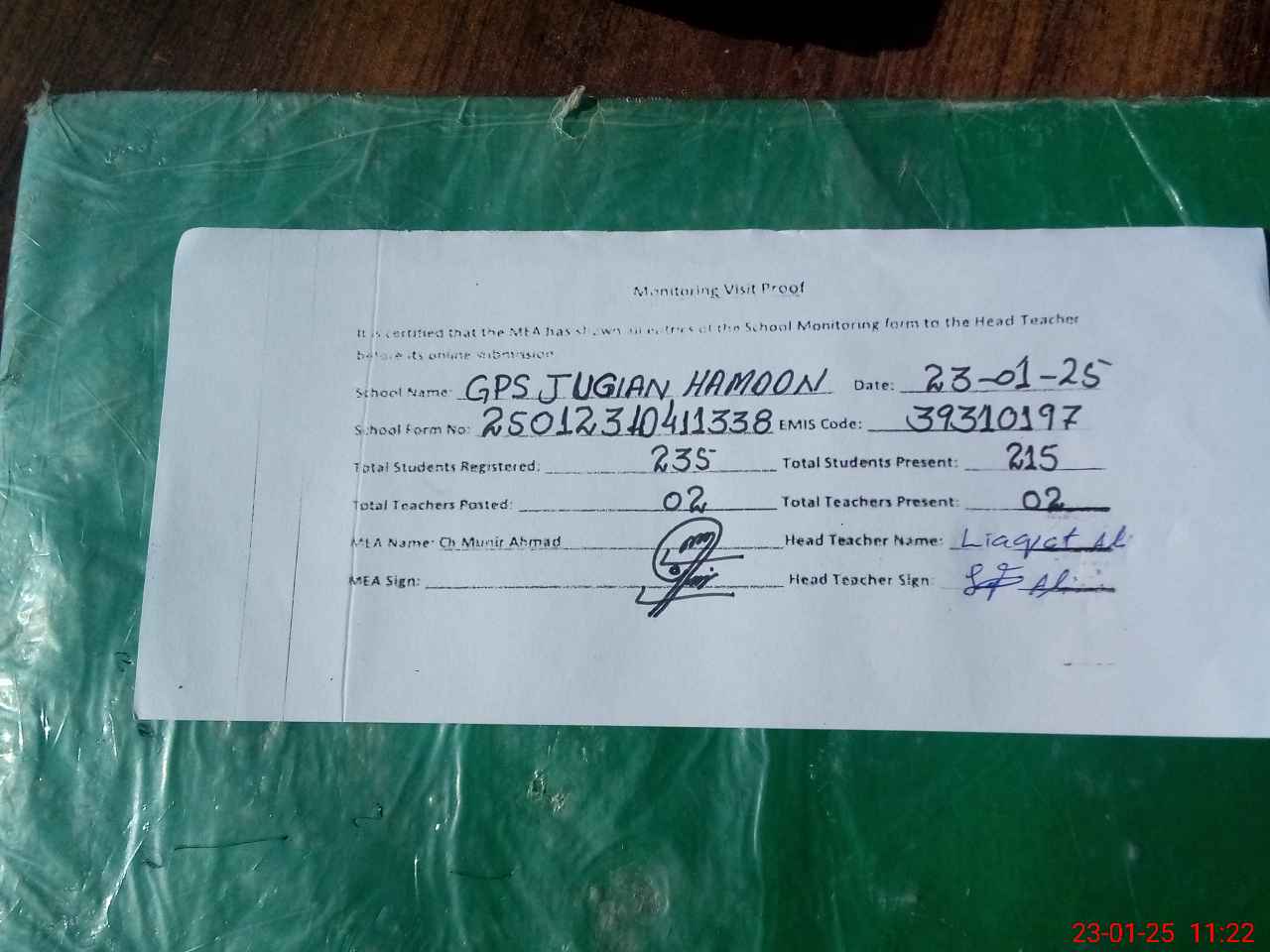 | EMIS Code: 39310197 | Name of School: GPS JUGIAN HAMOON | |||