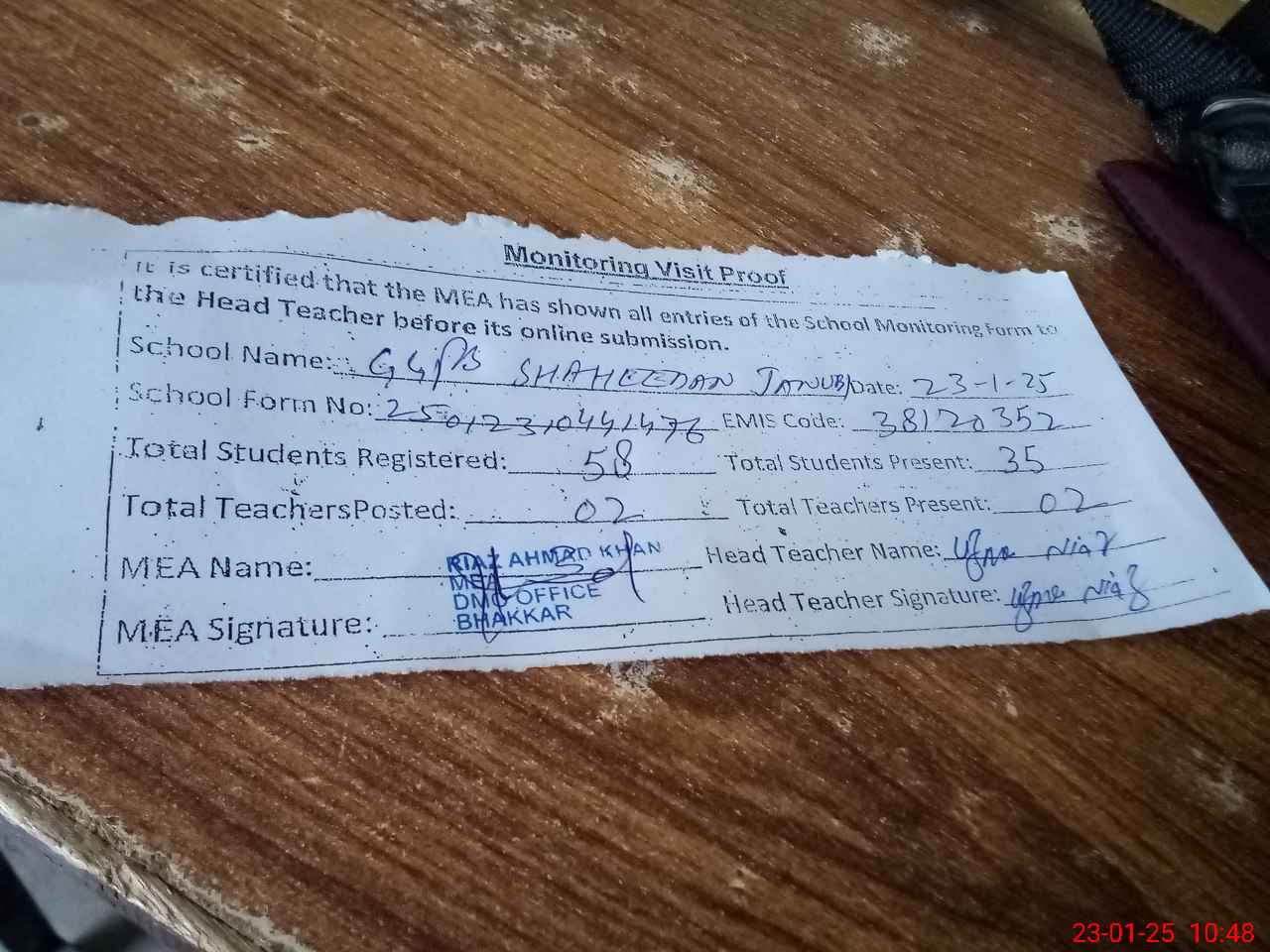 | EMIS Code: 38120352 | Name of School: GGPS SHAHEEDAN JANUBI | |||