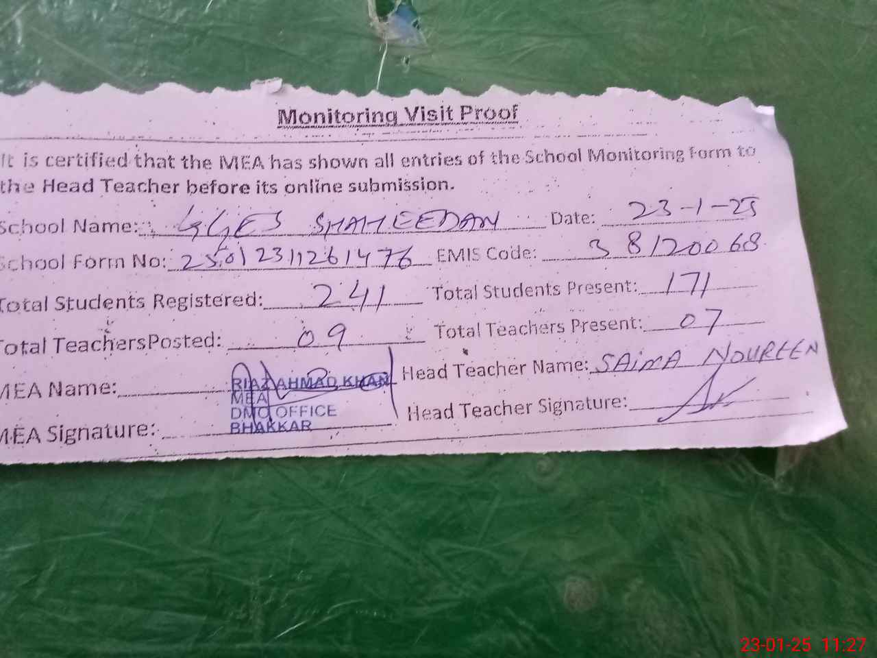 | EMIS Code: 38120068 | Name of School: GGHS SHAHEEDAN | |||