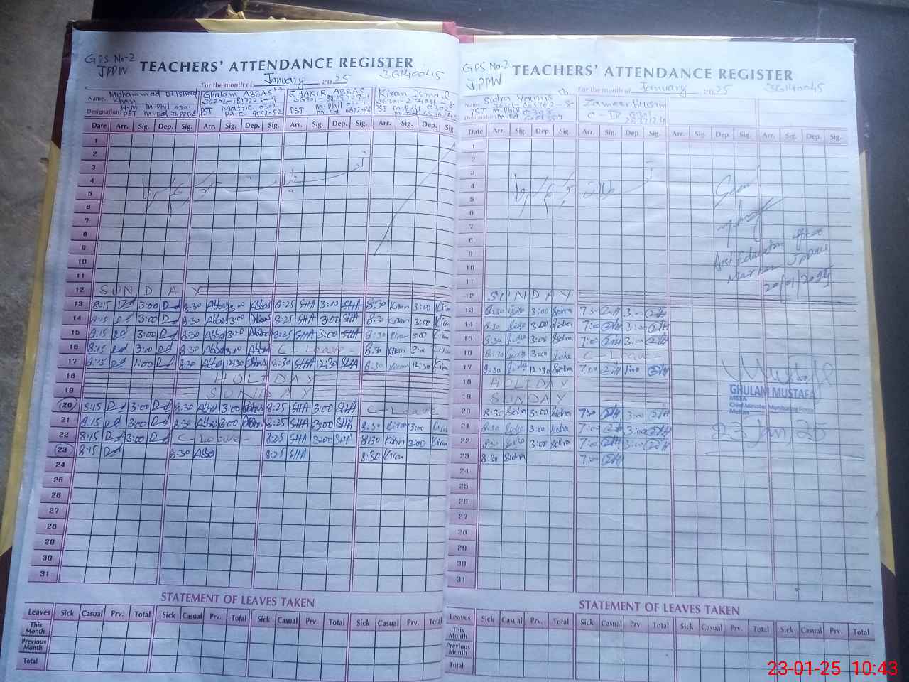 | CNIC | Full Name | Designation | R/C | Absence during last cal. month |