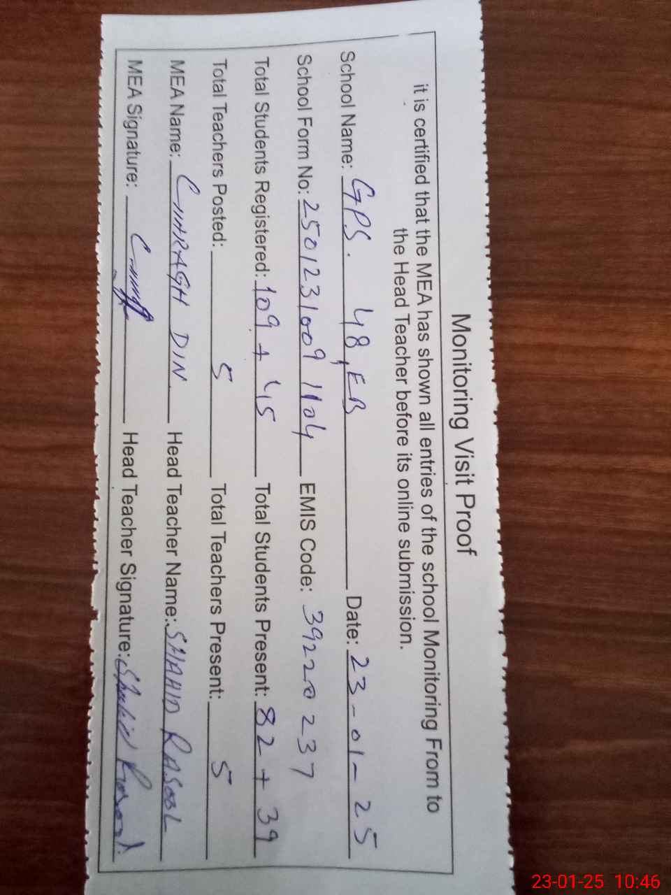 | EMIS Code: 39220237 | Name of School: GPS 48 EB P.O 50 EB ARIF WALA | |||