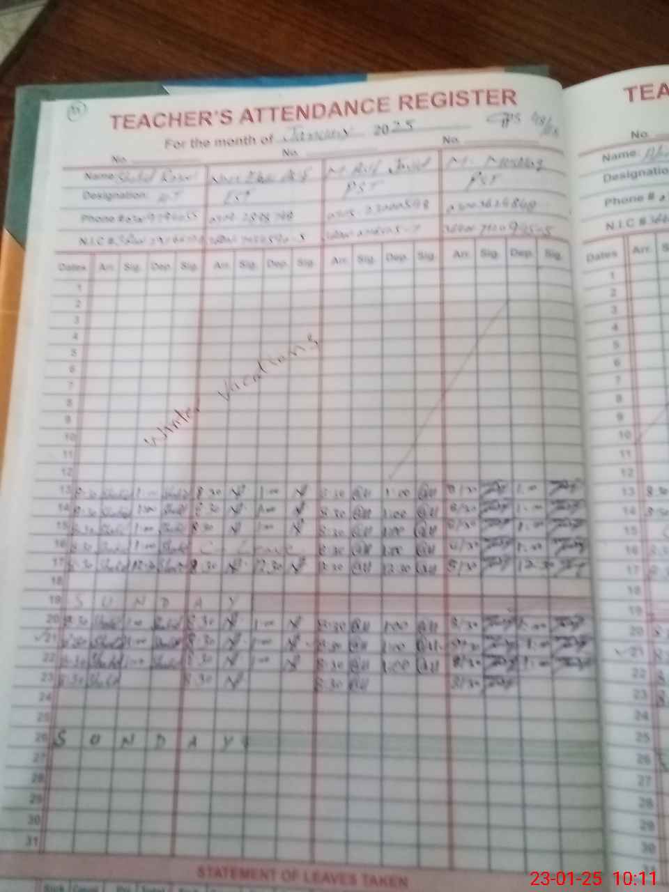 | Name: SH**** RA**** Designation: (School Headmaster's/Headmistress's) PST Phone/Cell Number: 03**** |