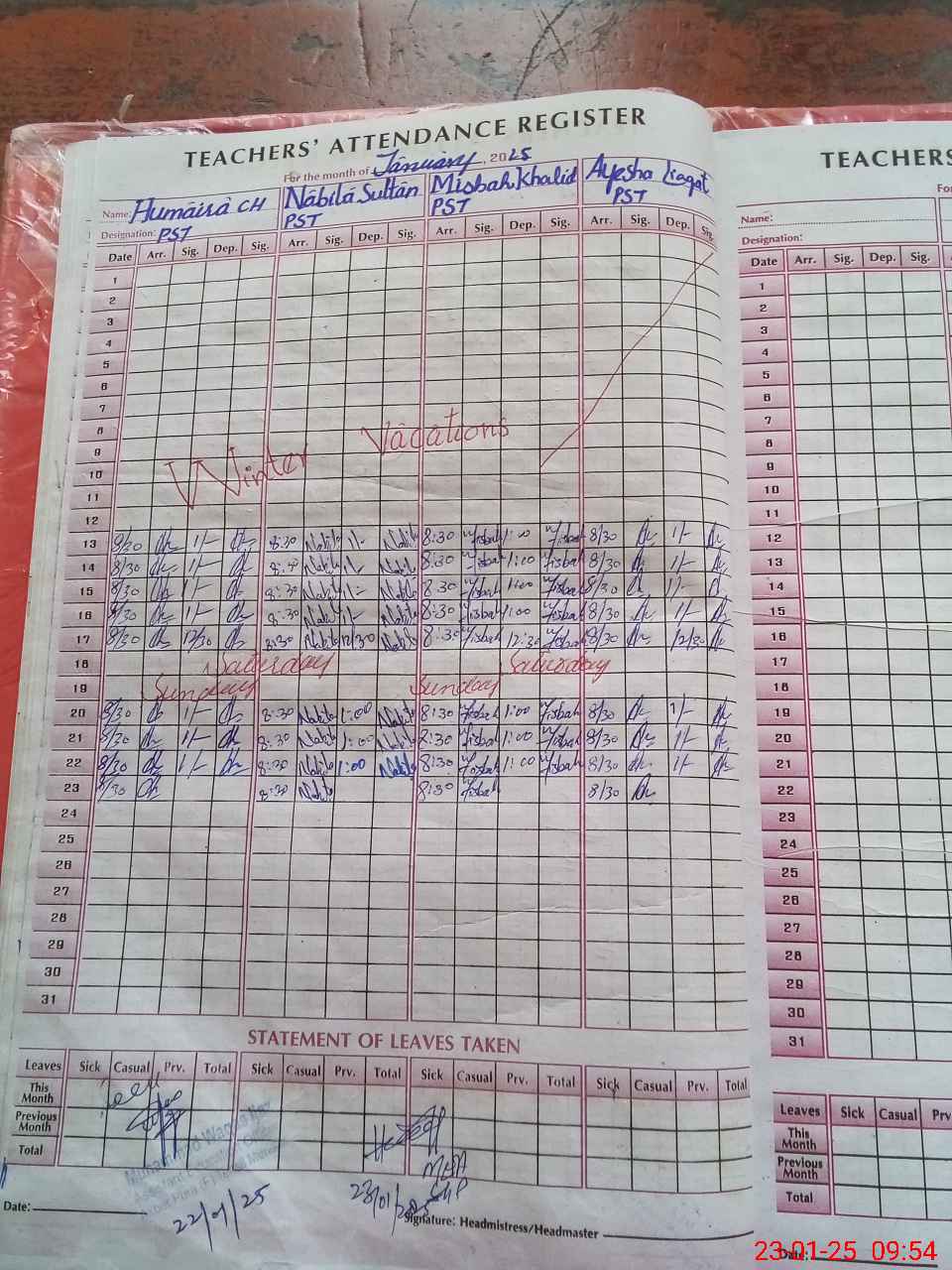 | Leave | Duty | Absent | Maternity | Medical | Ex- Pak |