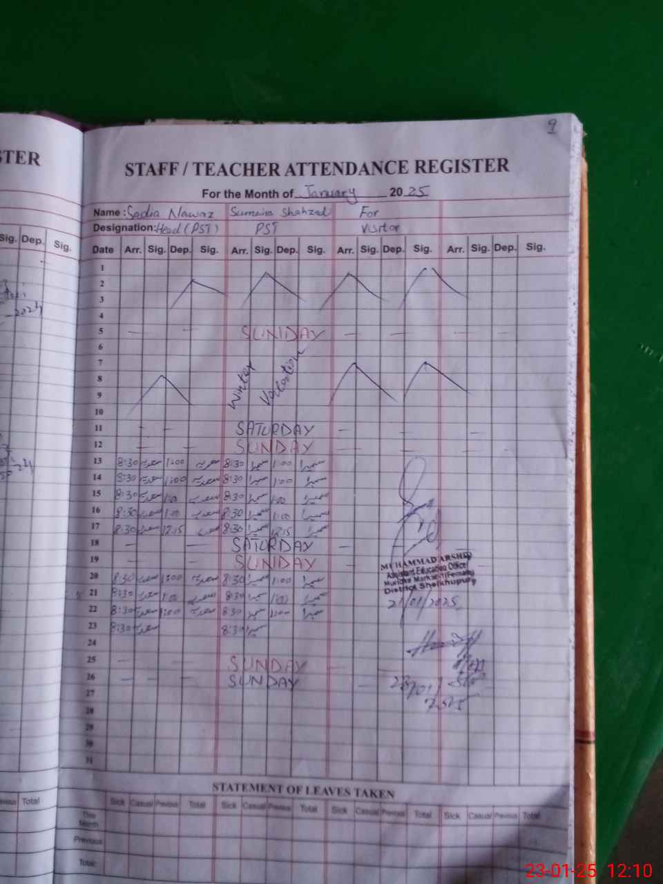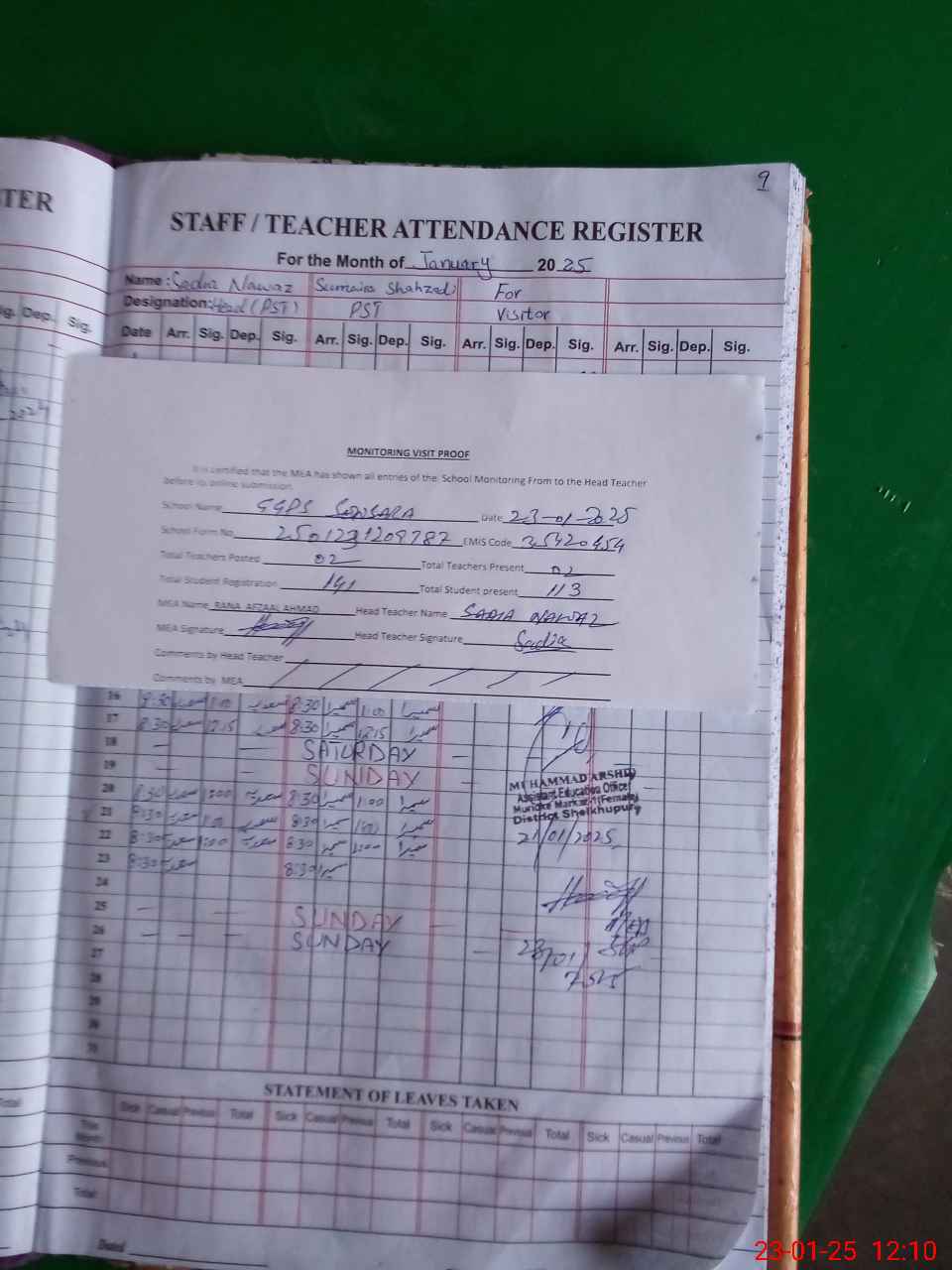 | Attendance Register | Head Teacher | MEA with School | Visit Proof |