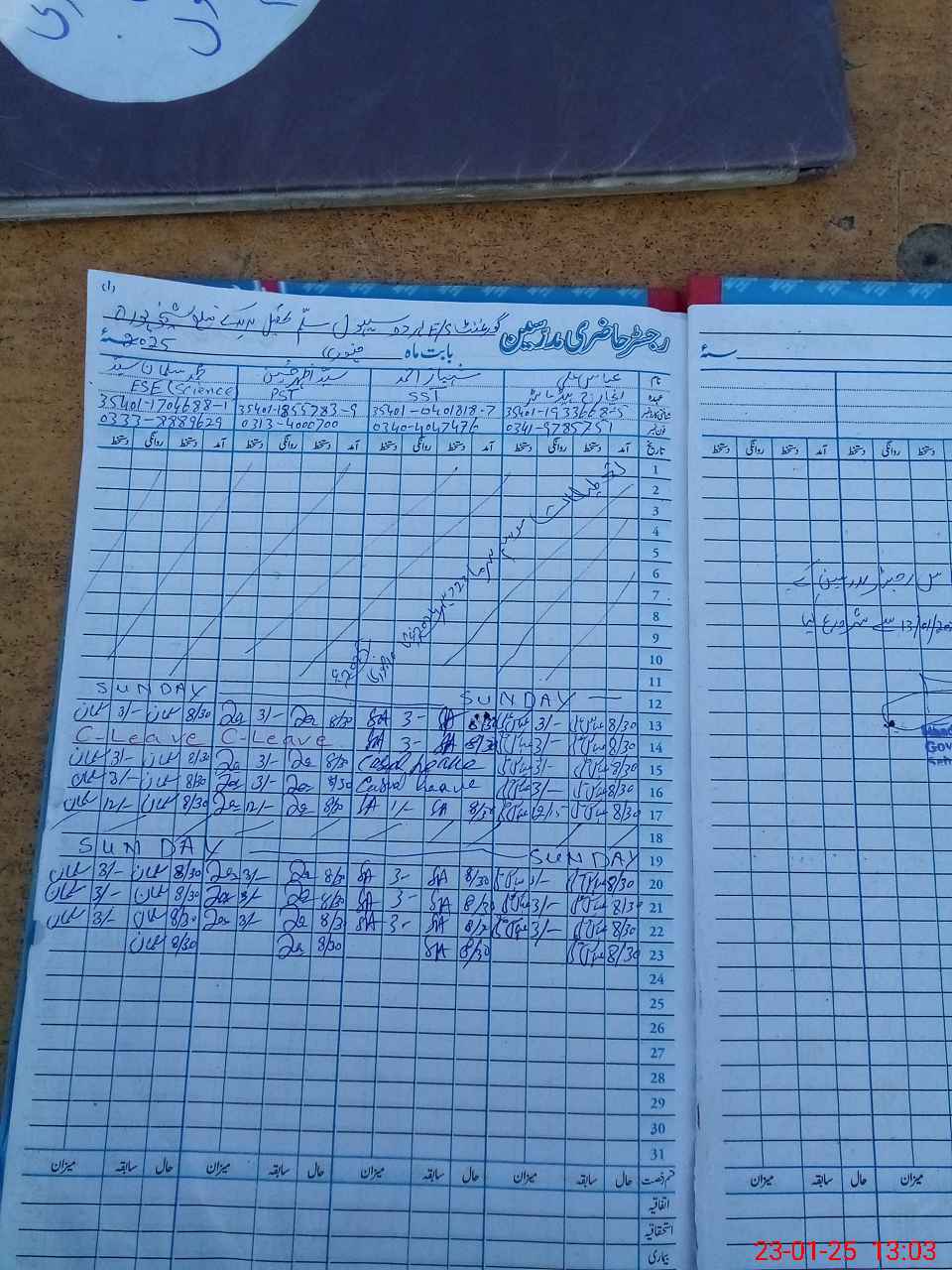 | Name: AB**** AL**** Designation: (School Headmaster's/Headmistress's) EST Phone/Cell Number: 03**** |