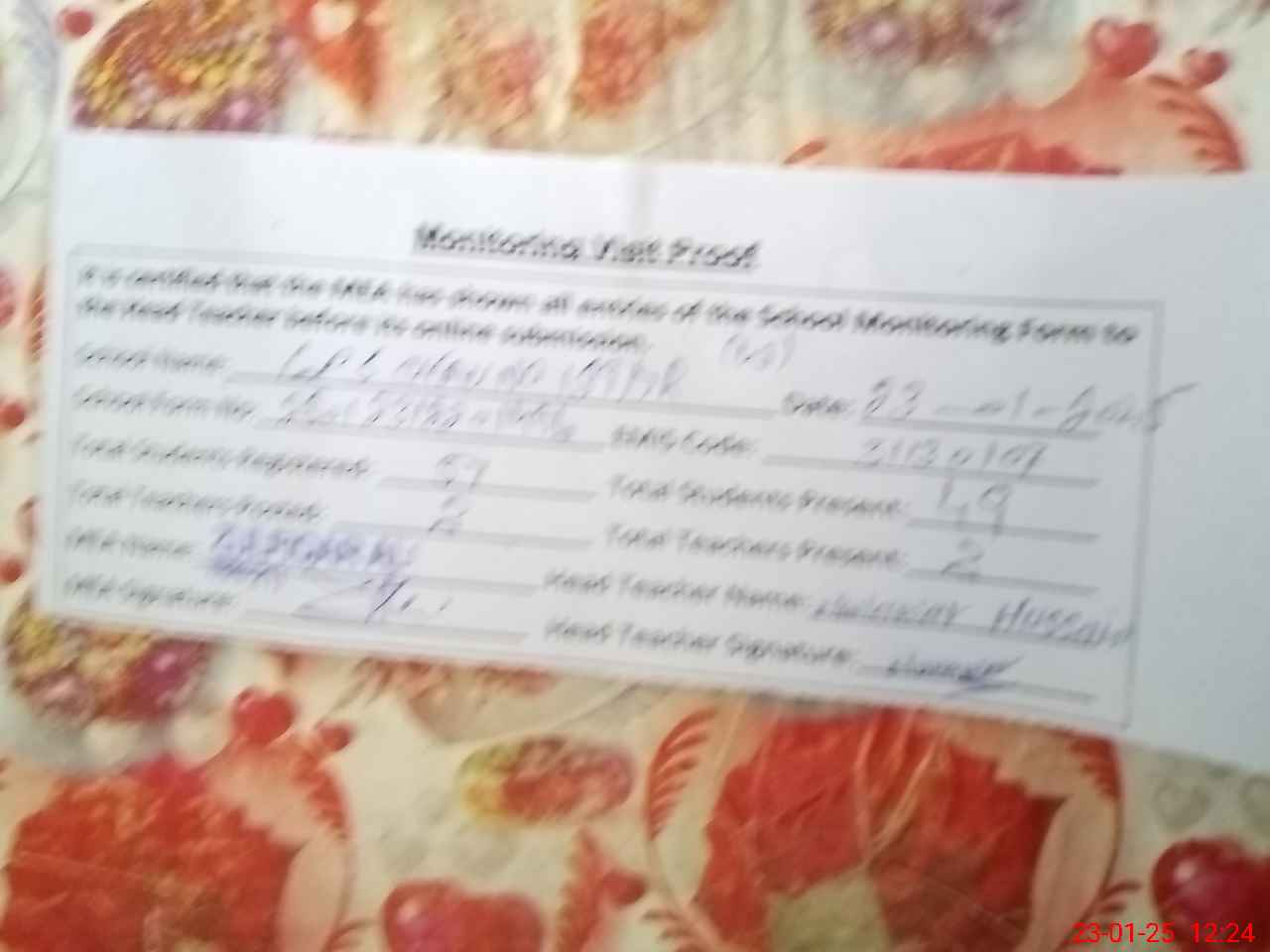 | Attendance Register | Head Teacher | MEA with School | Visit Proof |