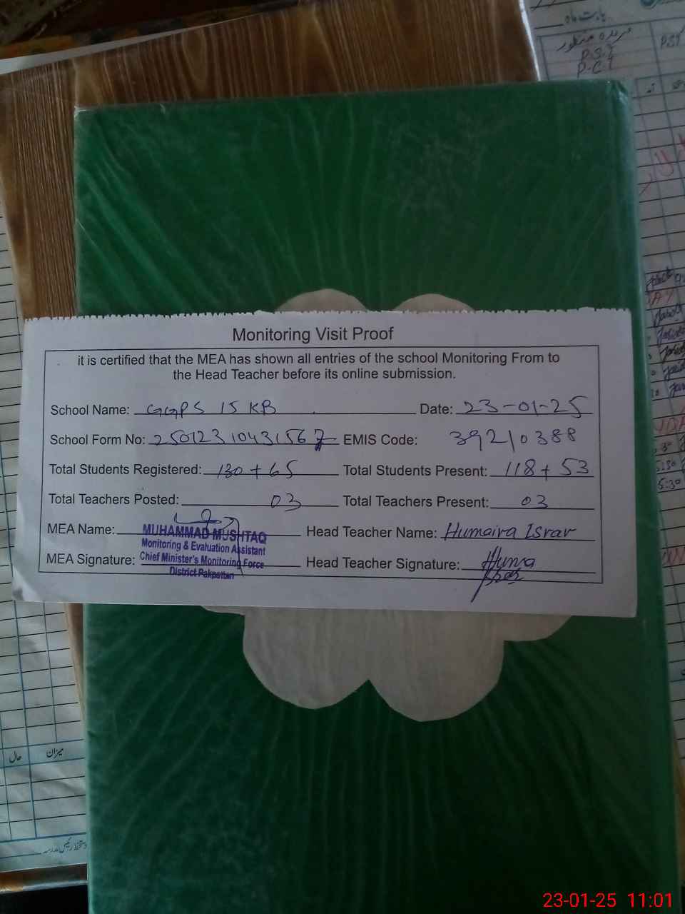 | Name: HU**** IS**** Designation: (School Headmaster's/Headmistress's) PST Phone/Cell Number: 03**** |