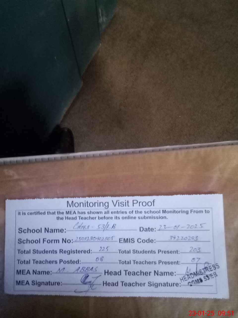 | Certified that this School was Inspected by the Undersigned MEA/DMO Today and the Information Stated Above is as Per Record. | |||||
