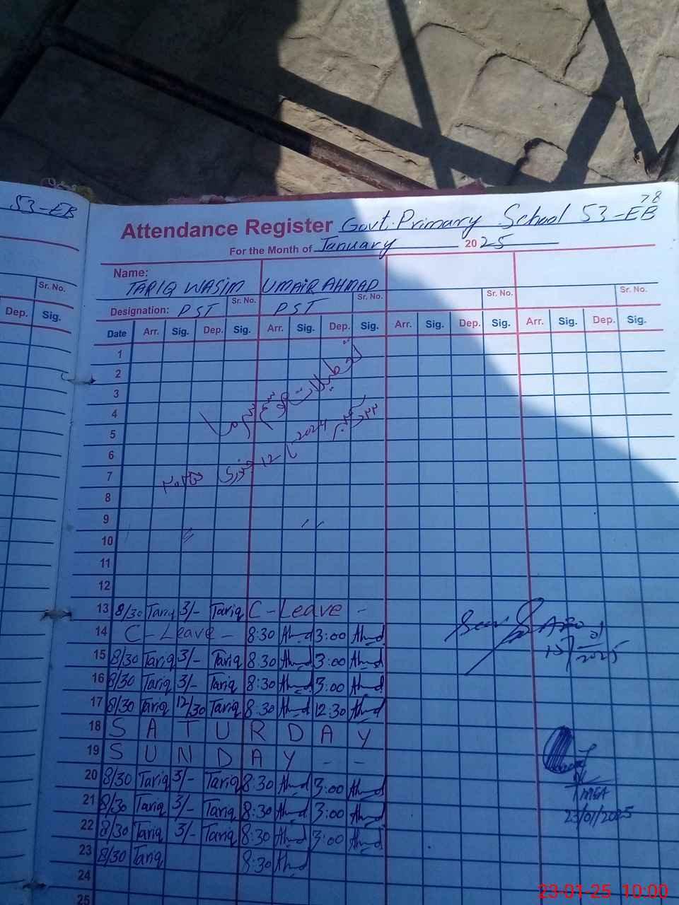 | Name: TA**** WA**** Designation: (School Headmaster's/Headmistress's) PST Phone/Cell Number: 03**** |