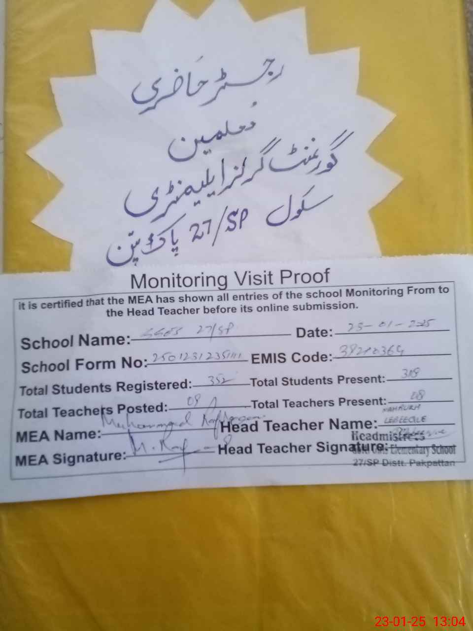 | EMIS Code: 39210364 | Name of School: GGES 27 SP | |||