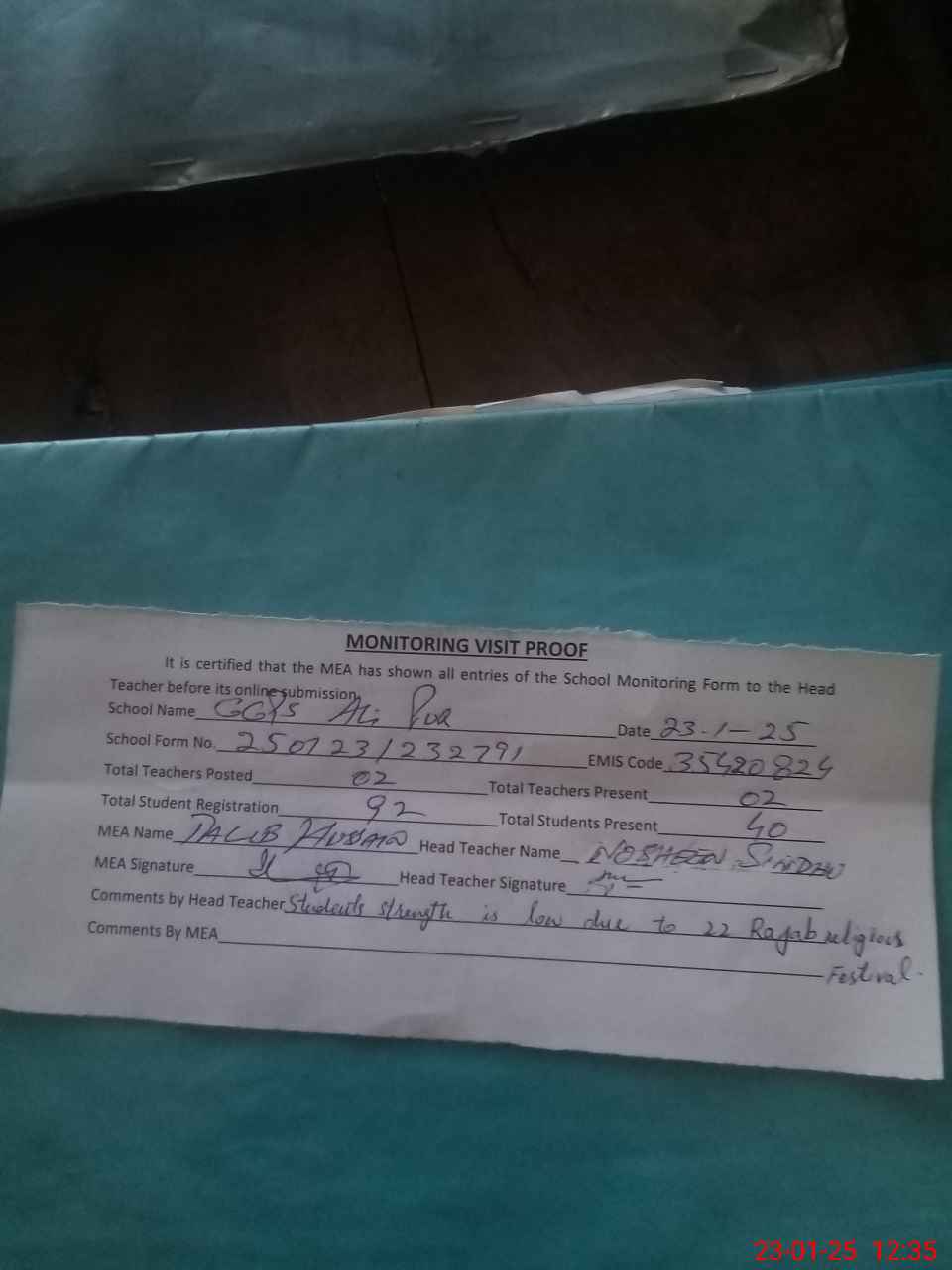 | EMIS Code: 35420824 | Name of School: GGPS ALI PUR | |||
