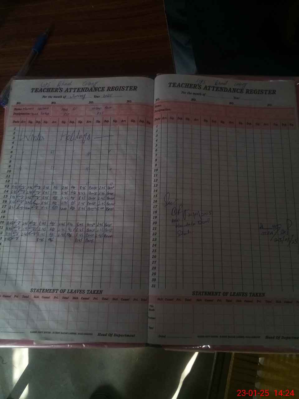 | Leave | Duty | Absent | Maternity | Medical | Ex- Pak |