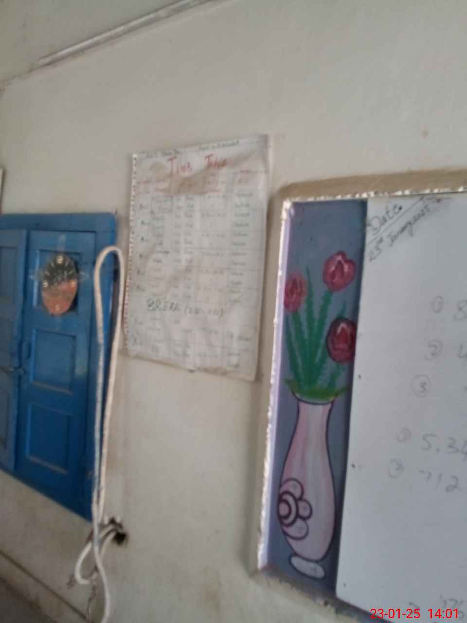 | Total no. of Classrooms: 2 No. of Classrooms Used for Teaching: 2 No. of Classrooms Storing Old Furniture, FTBs, etc: 0Comments if Any: Satisfactory |
