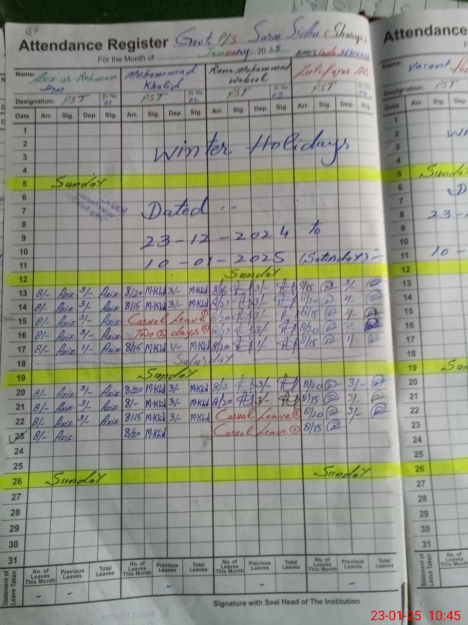| Name: AZ**** URRE**** Designation: (School Headmaster's/Headmistress's) PST/PTC/JV Phone/Cell Number: 03**** |