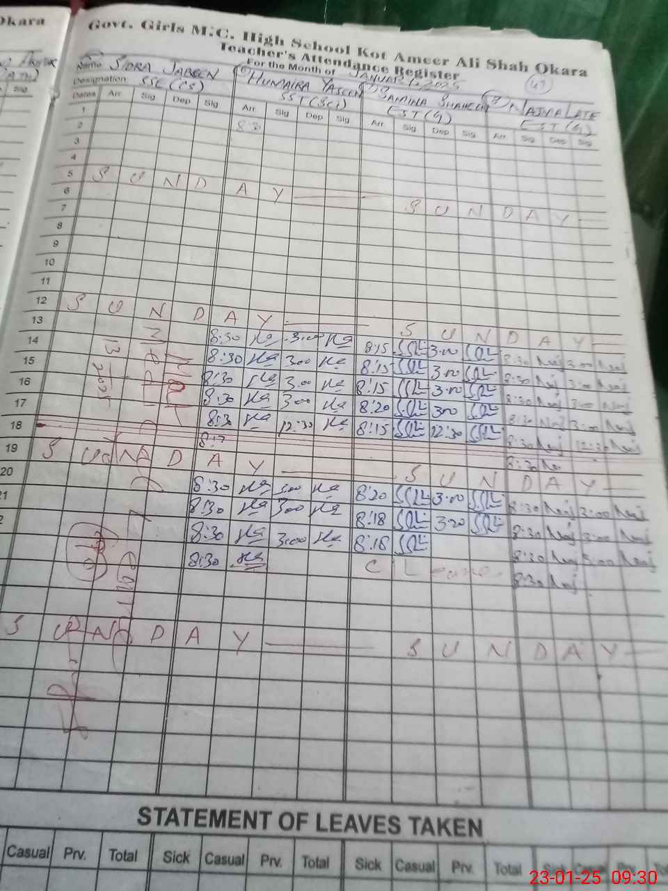 | EMIS Code: 39320955 | Name of School: GGHS MC JUNIOR MODEL KOT AMIR ALI SHAH OKARA | |||