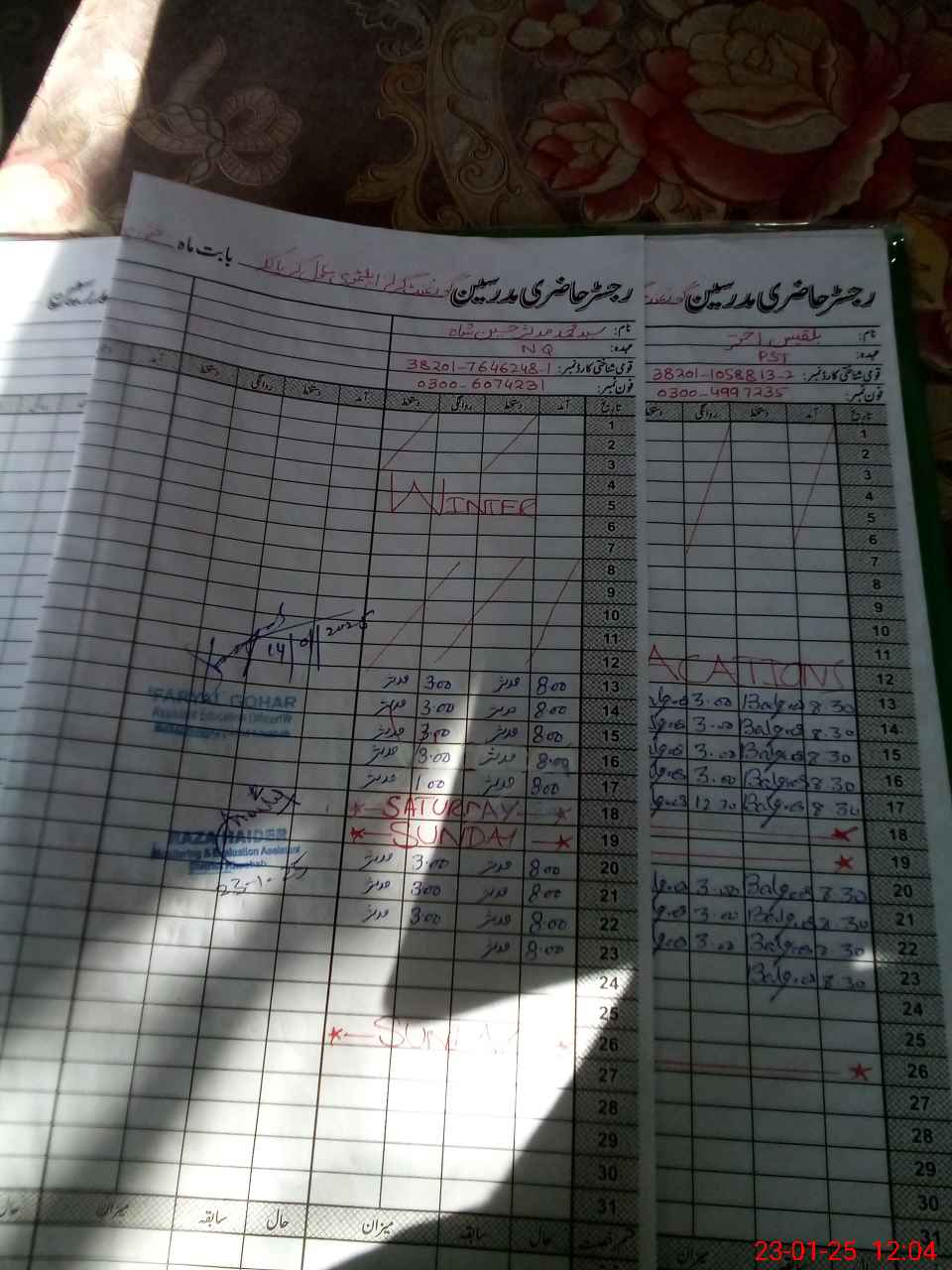 | Name: Sh**** Pe**** Designation: (School Headmaster's/Headmistress's) S.S.T.(GEN) Phone/Cell Number: 03**** |