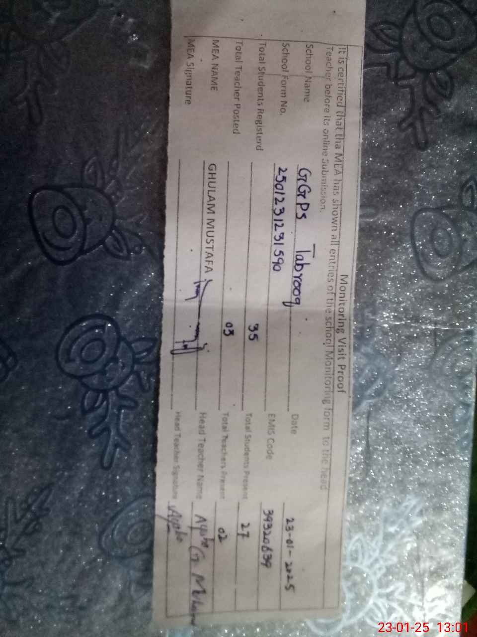 | EMIS Code: 39320639 | Name of School: GGPS TABROOQ | |||