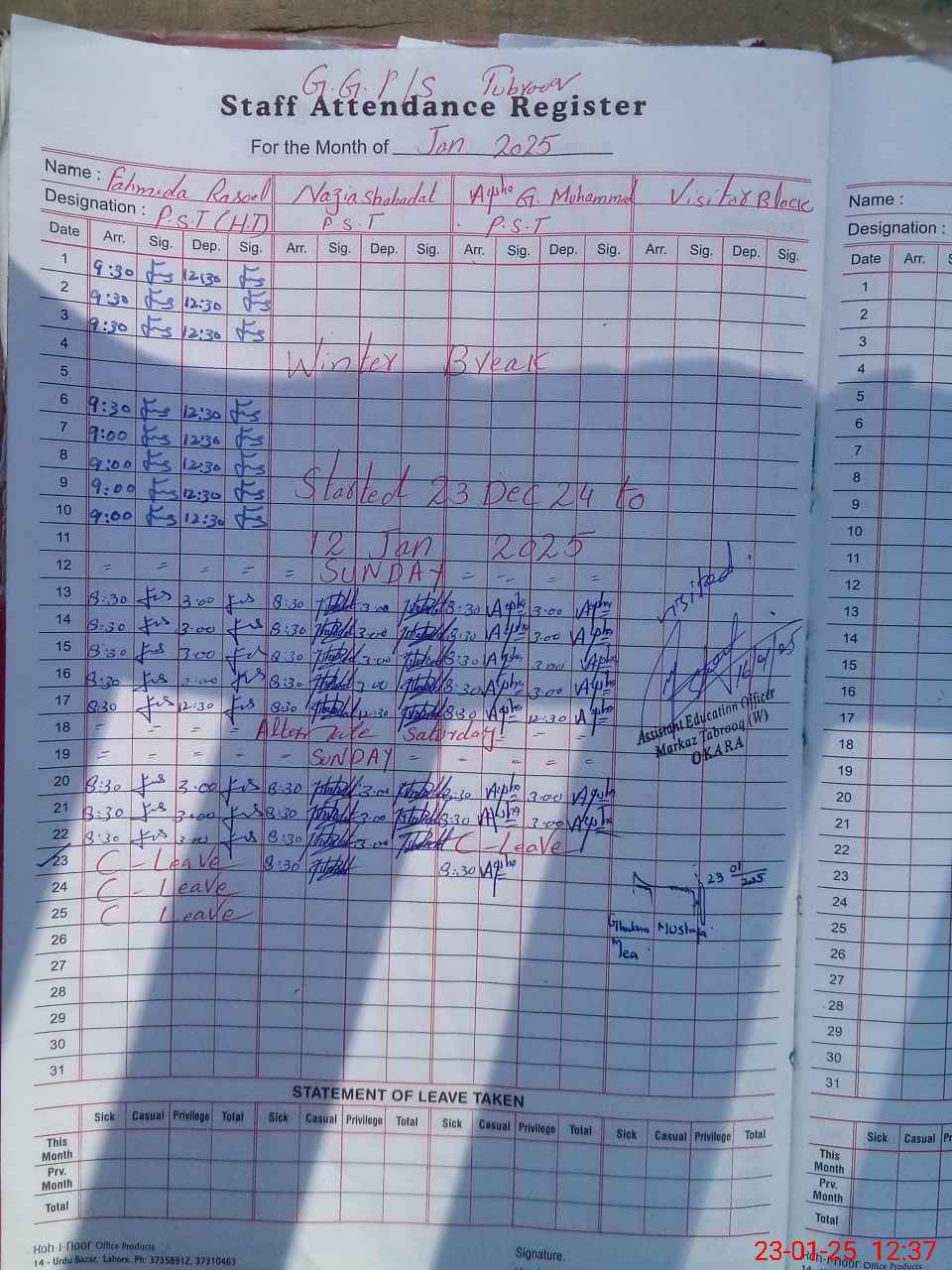| Name: Fa**** Ra**** Designation: (School Headmaster's/Headmistress's) PST Phone/Cell Number: 03**** |