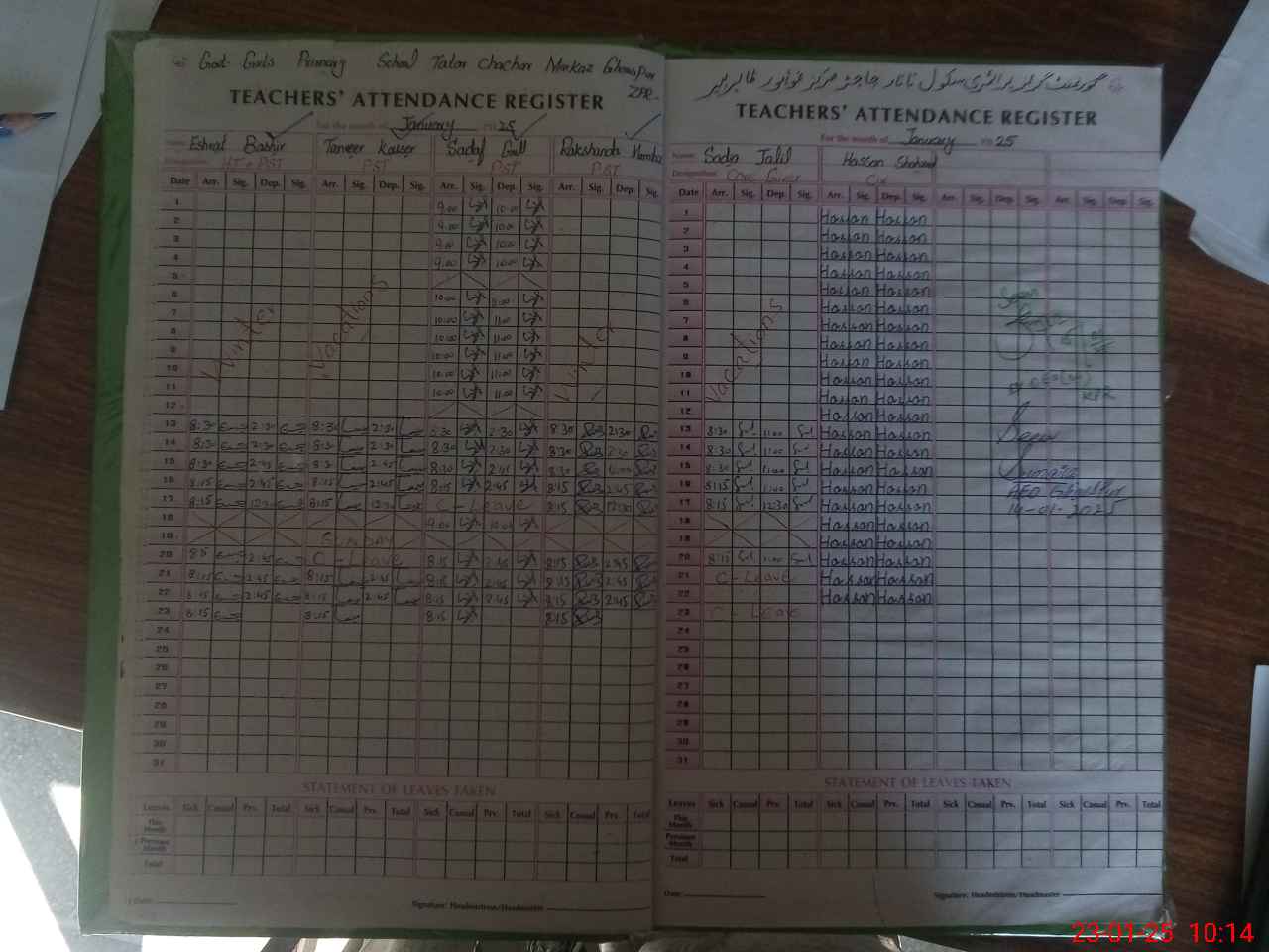 | Name: IS**** BA**** Designation: (School Headmaster's/Headmistress's) PST Phone/Cell Number: 03**** |