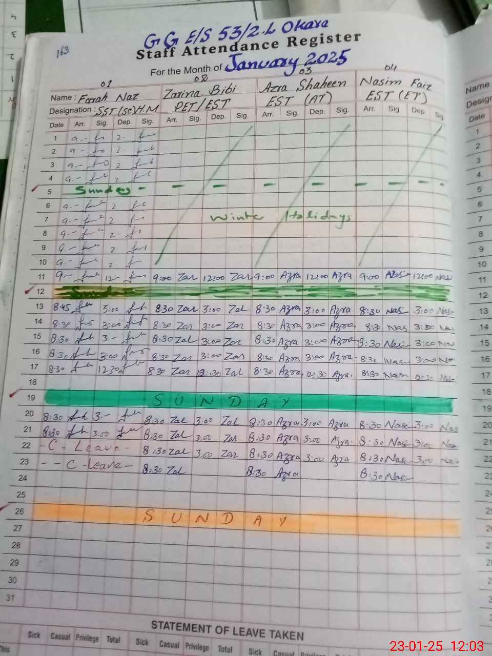 | 36**** | Sh**** Na**** | PST | Regular | 0 | 0 | 0 | 0 | 0 | 0 | 0 | 0 | 0 | Maternity |