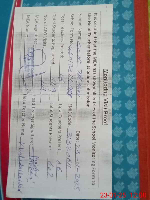 | Certified that this School was Inspected by the Undersigned MEA/DMO Today and the Information Stated Above is as Per Record. | |||||