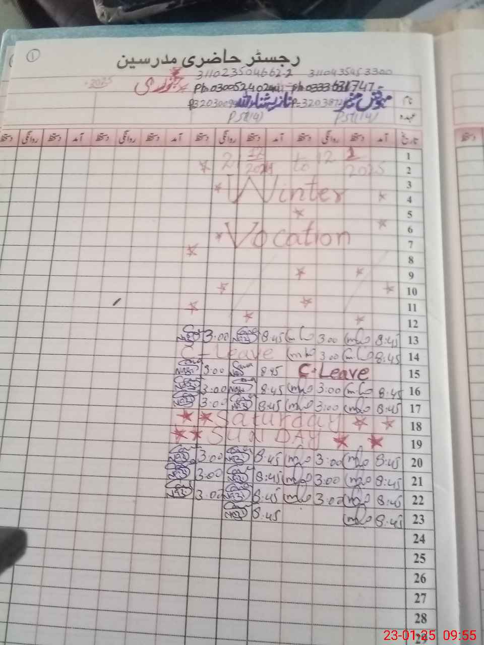 | CNIC | Full Name | Designation | R/C | Absence During Last Calender Month |