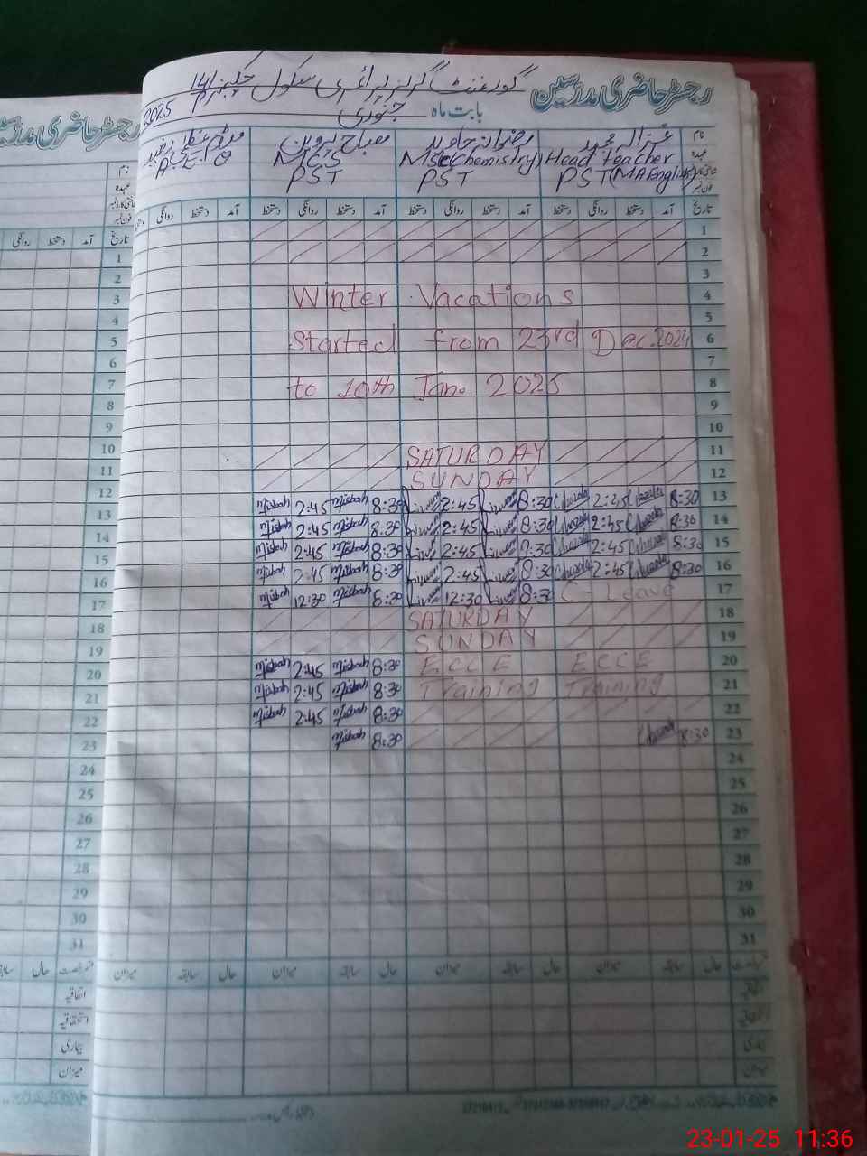 | CNIC | Full Name | Designation | R/C | Absence During Last Calender Month |