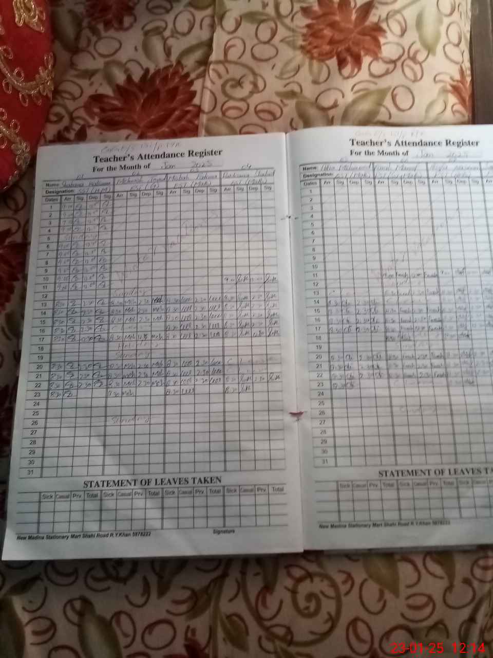 | CNIC | Full Name | Designation | R/C | Absence During Last Calender Month |