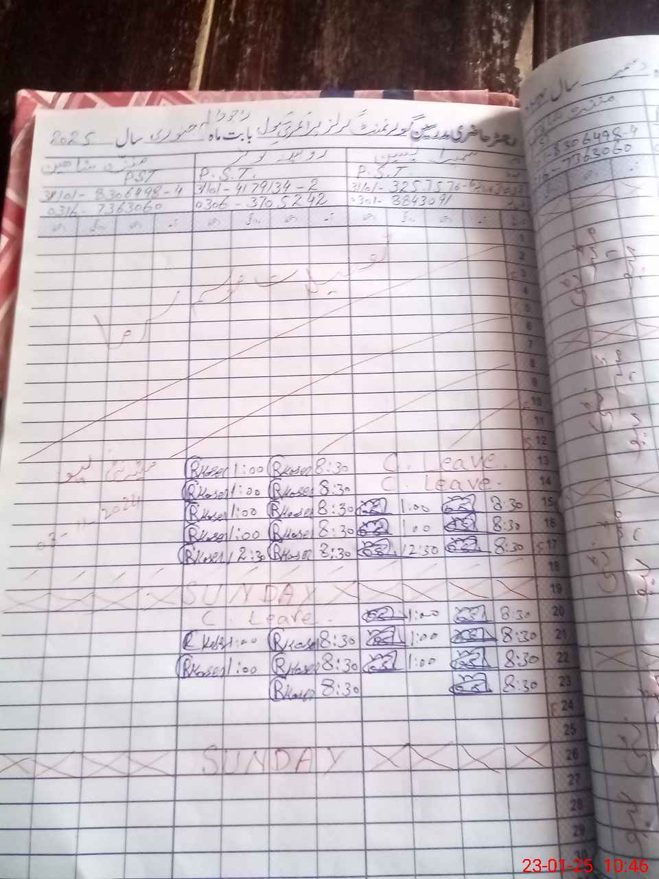 | CNIC | Full Name | Designation | R/C | Absence During Last Calender Month |
