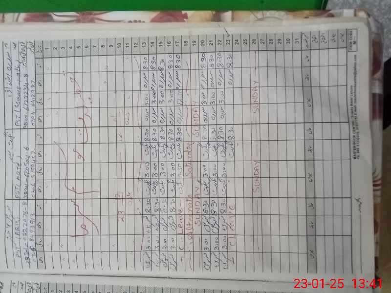 | CNIC | Full Name | Designation | R/C | Absence During Last Calender Month |