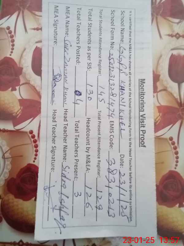 | EMIS Code: 38310213 | Name of School: GGPS KHANI KHEL | |||