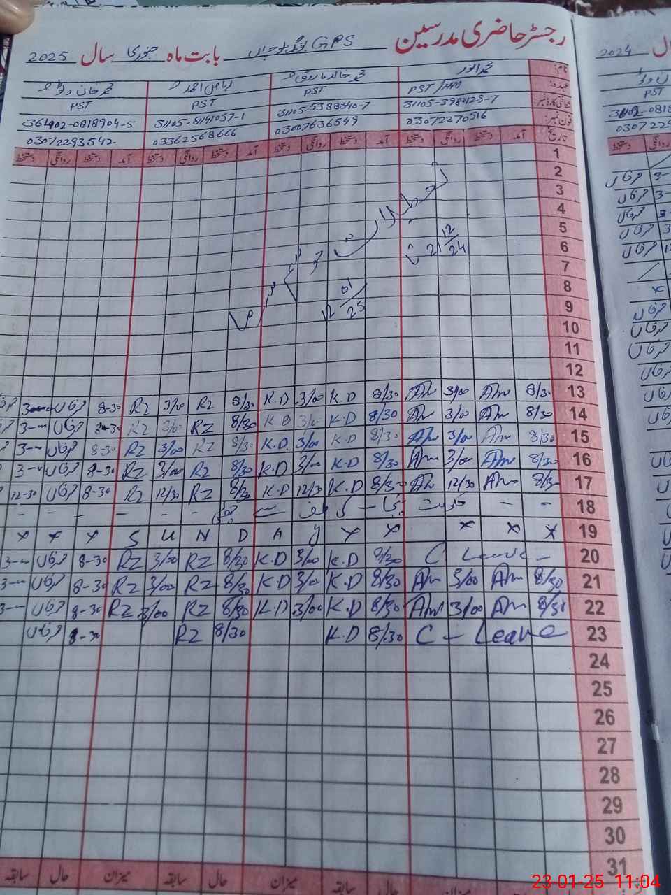 | Name: MU**** AN**** Designation: (School Headmaster's/Headmistress's) PST Phone/Cell Number: 03**** |